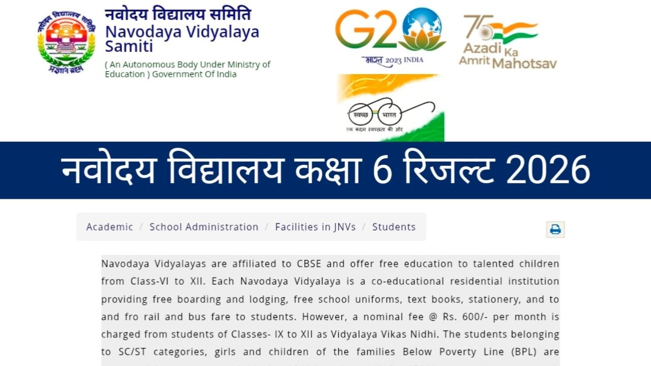 JNVST Class 6 Result 2026 Date : देशभर के लाखों अभ्यर्थियों का इंतजार अब खत्म होने वाला है। जवाहर नवोदय विद्यालय चयन परीक्षा (JNVST) कक्षा 6 फेज-1 का परिणाम जल्द जारी किया जाएगा। इस बार लगभग 20 लाख से अधिक छात्रों ने परीक्षा में भाग लिया है, इसलिए रिजल्ट को लेकर उत्सुकता काफी ज्यादा है। परीक्षा का पहला चरण 13 दिसंबर 2025 को आयोजित किया गया था जबकि दूसरा चरण 11 अप्रैल 2026 को आयोजित होना तय है।