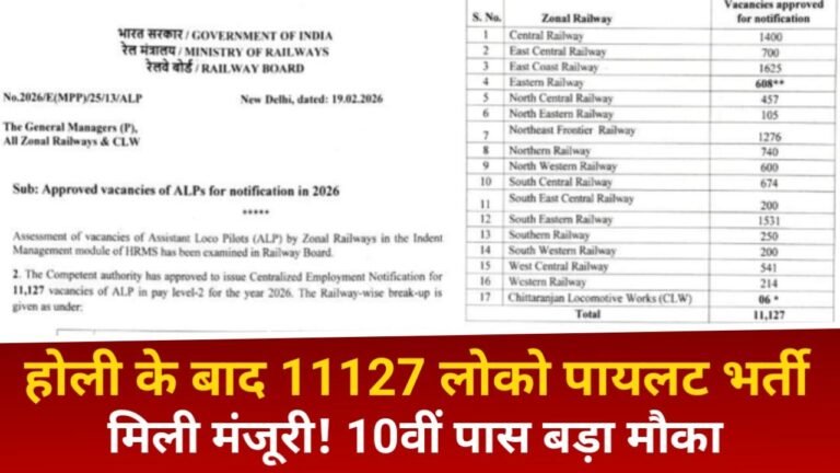 RRB Loco Pilot Notification 2026: होली के बाद 11127 ALP भर्ती का धमाका! 10वीं पास के लिए रेलवे जॉब का बड़ा मौका