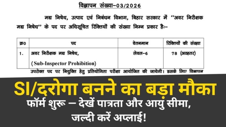 Bihar Police SI Apply Online 2026: बिहार में सरकारी नौकरी (Government Job) की तैयारी कर रहे युवाओं के लिए शानदार …