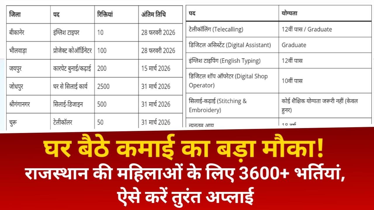 घर बैठे कमाई का बड़ा मौका! राजस्थान की महिलाओं के लिए 3600+ Work From Home जॉब, ऐसे करें तुरंत अप्लाई